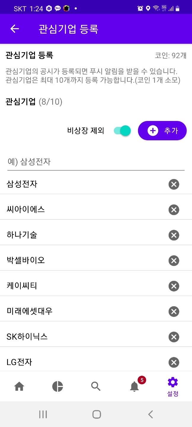 공시 제목에 등록된 키워드가 포함되면 푸시 알림을 받을 수 있습니다.