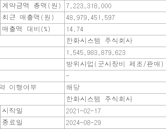 계약금액 약 72억원(매출액 대비 14.74%)